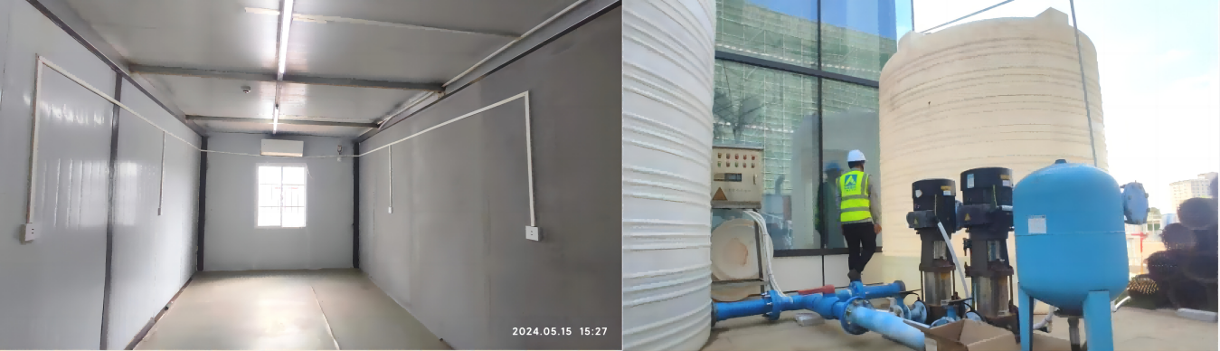 項(xiàng)目部利用一期既有辦公樓,將項(xiàng)目部辦公室、會(huì)議室、工人宿舍打造成了具有中國(guó)建技特色的標(biāo)準(zhǔn)化現(xiàn)代化辦公場(chǎng)所,為管理人員及工人提供了優(yōu)美的辦公和居住環(huán)境。