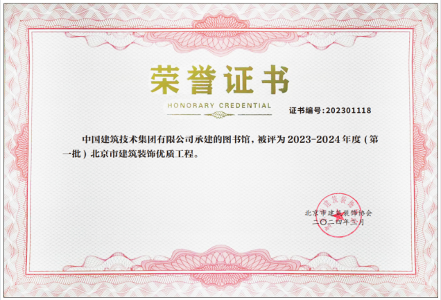 近日,由中國建技承建的麗澤商務區鼎興大廈A座房屋裝修項目、北京大學醫學部圖書館工程施工總承包項目和北京市海淀區豐豪東路9號院中創芯中心某公司改造項目榮獲2023-2024年度(第一批)北京市建筑裝飾優質工程獎。