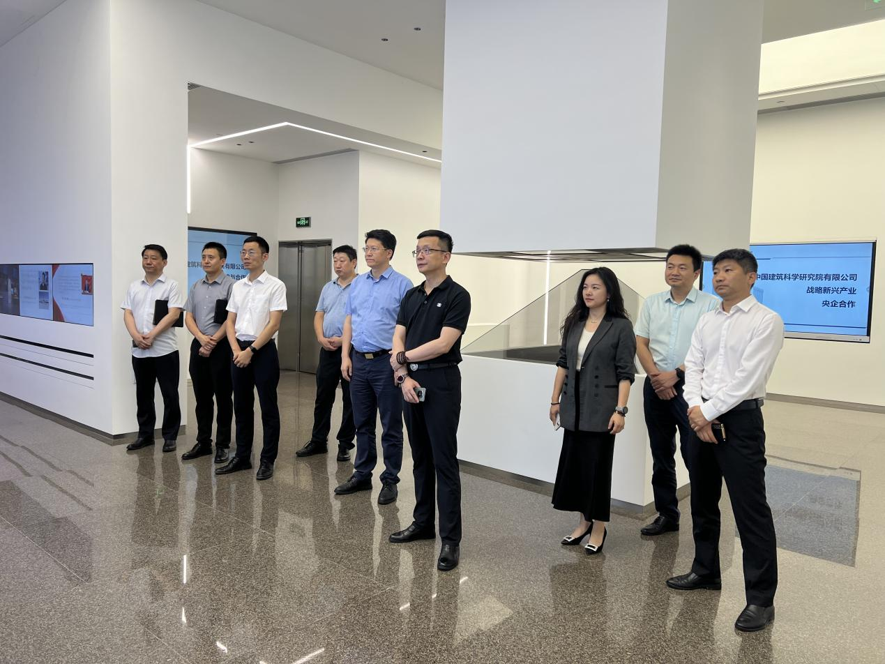 石磊陪同翟欣一行實地參觀中國建研院展廳。三一筑工總工程師、智能建造研究院院長馬云飛和有關同志;中國建技總工程師隗偉、副總工程師王瑋及有關分支機構負責人參加座談。