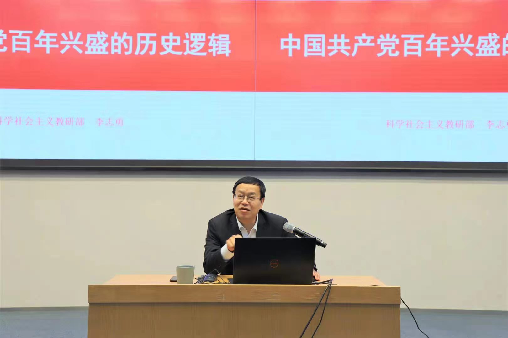 李志勇教授從初心使命、光輝歷程、偉大成就和歷史經(jīng)驗(yàn)四個(gè)方面引導(dǎo)大家一同回顧了中國(guó)共產(chǎn)黨成立以來(lái)的崢嶸歲月。在對(duì)歷史經(jīng)驗(yàn)的講授中,李教授分別從思想一變天地寬、勇立潮頭敢為先、得民心者得天下、自我革命御風(fēng)險(xiǎn)、紅色基因不能變和團(tuán)結(jié)統(tǒng)一鑄輝煌六個(gè)方面,闡明了中國(guó)共產(chǎn)黨能夠帶領(lǐng)中國(guó)人民從站起來(lái)、富起來(lái)到強(qiáng)起來(lái)的深刻原因,充分論證了中國(guó)特色社會(huì)主義制度的優(yōu)越性和道路的必然性。