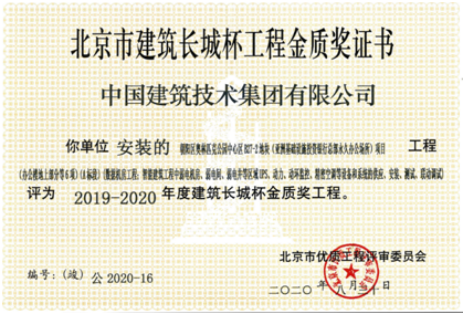 近日,集團公司智能化部于2019年1月承建的亞投行永久辦公場所項目數據機房工程榮獲2019-2020年度北京市建筑長城杯工程金質獎。長城杯金質獎為北京市建筑工程質量最高榮譽獎,評選由兩部分組成,一是通過初評小組組織初評檢查推薦,二是市建筑評委會評審表決,該評選對建筑結構有著極其嚴格的要求,工程質量必須達到設計要求和相關規定。
