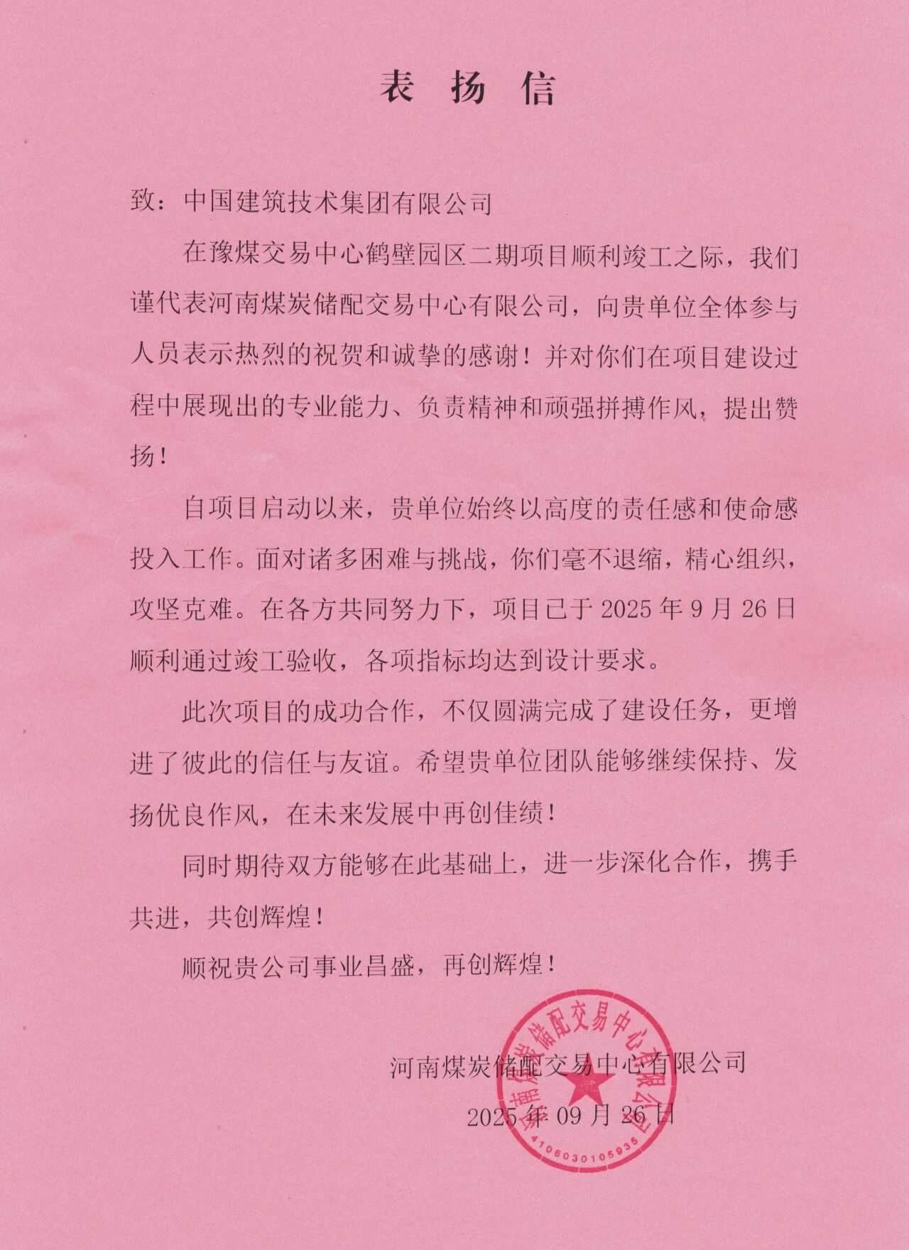 建設過程中,集團公司領導親臨指導,項目團隊頂風冒雪、晝夜奮戰,高效推進項目進程,圓滿完成各節點目標,建設單位發來表揚信,贏得業主與政府贊譽,盡顯央企擔當。此次項目竣工,標志著中國建筑技術集團在煤炭及倉儲物流工程建設領域實現新突破,為區域能源基礎設施升級添上了濃墨重彩的一筆。
