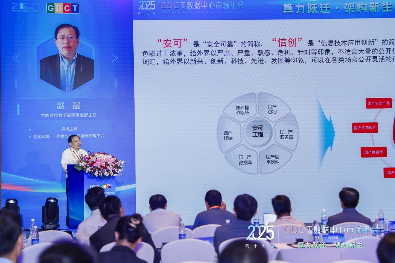 中國(guó)建技數(shù)字能源事業(yè)部總經(jīng)理趙晨在《信創(chuàng)賦能—構(gòu)建安全基礎(chǔ)設(shè)施平臺(tái)》演講中表示,數(shù)據(jù)中心作為信息化關(guān)鍵底座,面臨系統(tǒng)復(fù)雜性與關(guān)鍵基礎(chǔ)設(shè)施可靠性兩大核心挑戰(zhàn)。他從信創(chuàng)視角深入剖析了數(shù)據(jù)中心基礎(chǔ)設(shè)施建設(shè)的風(fēng)險(xiǎn)點(diǎn),并提出了針對(duì)性的解決方案,強(qiáng)調(diào)構(gòu)建自主可控的安全基礎(chǔ)設(shè)施平臺(tái)對(duì)保障數(shù)據(jù)中心高可用性的重要意義。