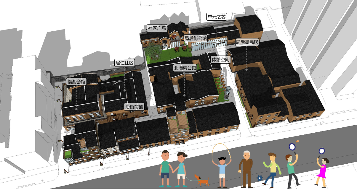 3)活力發展:評估歷史風貌并梳理文化脈絡、進行具有針對性的保修改拆建、合理導入業態形成自身造血鏈。