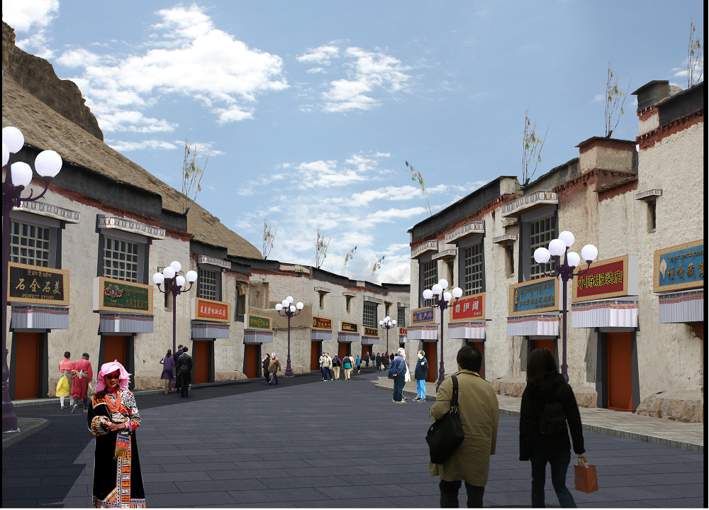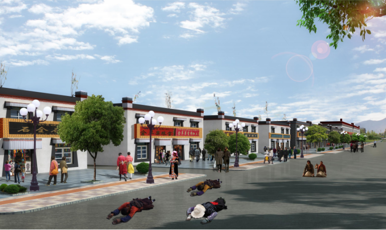 更新:對于規劃地塊內的沿街建筑,質量較好的,但風貌較為普通的現狀建筑,規劃予以更新。主要表現為外立面的重新裝飾,融入藏式風格,以及新功能的植入。重建:對于規劃用地范圍內的質量較差的建筑、危房、以及影響風貌但難以處理的建筑,規劃予以拆除并重新建設。新建:位于江孜南部的地區處于未開發狀態,規劃將其作為城市新區建設用地,并融入新藏式風格。