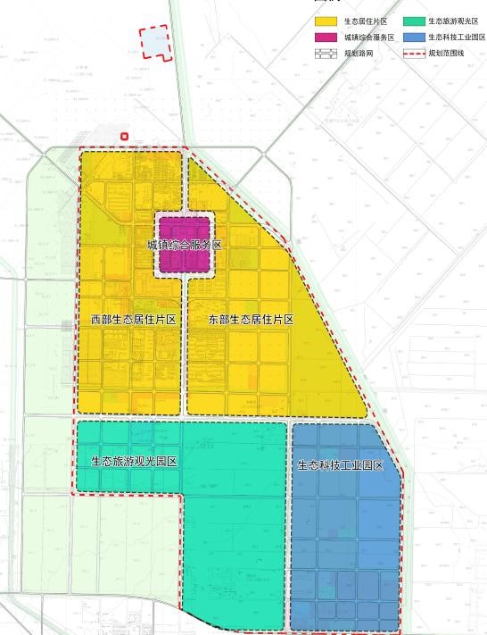 城鎮(zhèn)空間布局——規(guī)劃形成“一心、三軸、六片區(qū)” 的總體結(jié)構(gòu)。