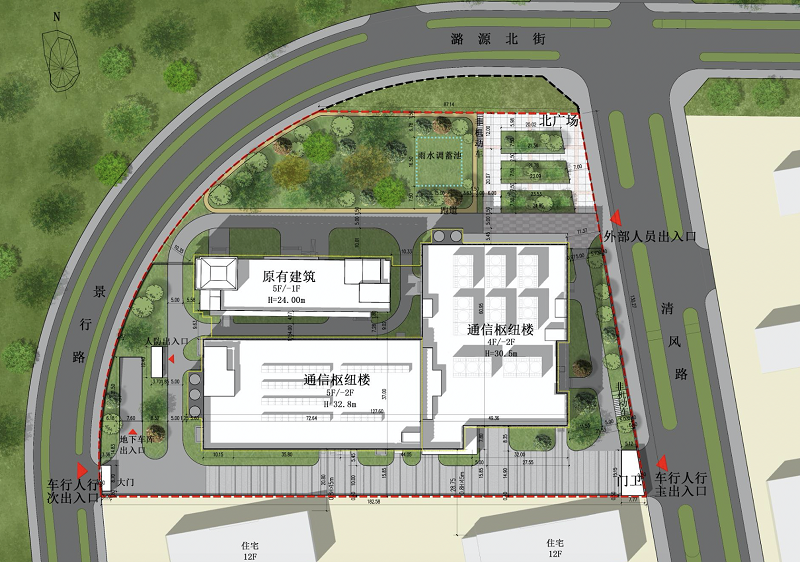 項目在保留原有通信樓基礎上,在南側及東側新建一座L型通信樞紐樓。項目建成后,可以滿足國際出口設備和互聯網安全設備擴容需求,同時打造國際一流的物聯網、大數據分析、云計算及各類智慧應用基地,并為中國電信與中國移動提供機房,充分滿足城市副中心辦公區及整個城市副中心區域未來多樣化的智慧通信需求以及網絡安全需求,為城市副中心提供更優質、更便捷、更安全的全方位通信服務。