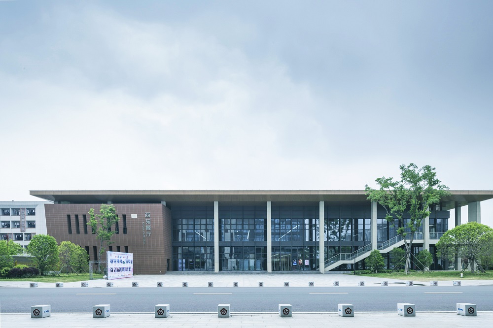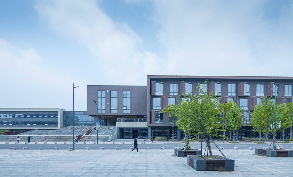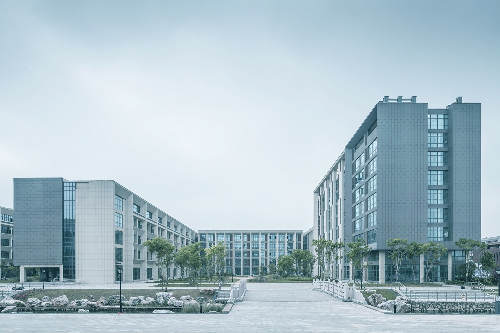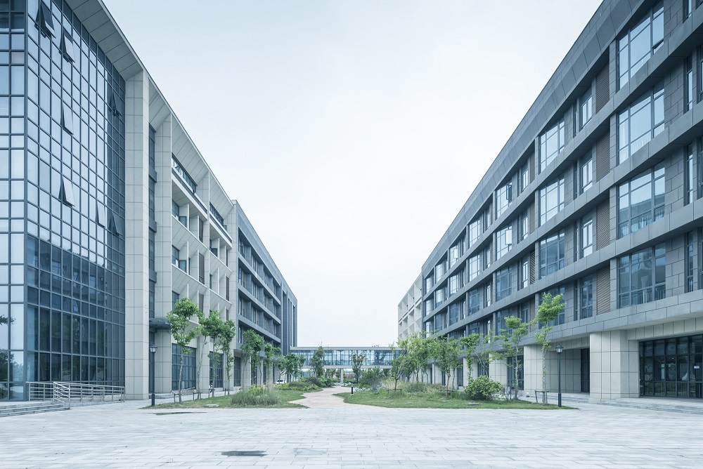 建筑設計秉承傳承與創新的核心理念。研究高等教育起源校園規劃手法與東西方校園開放空間策略,奠定校園核心區域教學區、實訓區基調。教學區嚴謹莊重,打造軸線分明的共享空間,視為傳承;實訓區流動拓展,打造平等、自由、交流、學習的氛圍,視為創新。結合江蘇泰州當地建筑顏色與現代校園色彩體系,體系校園的文化與嚴謹。