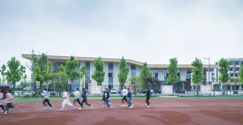 空間規劃上,打造以場地水系的改造為基礎、貫穿場地東西的創新軸,與主入口和湖面自然串聯的南北軸線傳承軸。建筑設計突破傳統教學樓與地面的簡單垂直空間關系,利用柱廊、下沉、屋頂平臺等手法,讓立體的校園空間具有了流動性和交流性,最大化豐富了學生的交流活動空間。