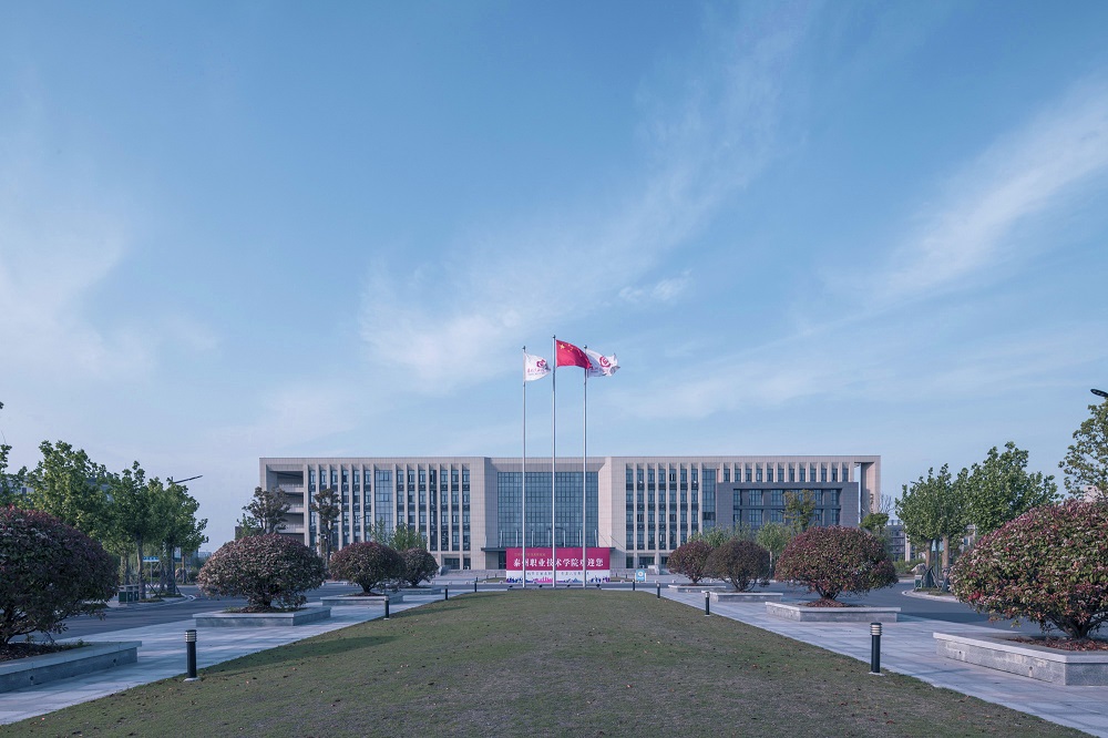 本項目為泰州職業技術學院中國醫藥城新校區規劃與建筑方案。選址于泰州中國醫藥城境內。規劃用地面積約1061 畝。設計規劃在校學生10000人,教職員工670 余人。實際用地面積約54萬平方米,一期設計總建筑面積約27.98萬平方米。實際本單位完成施工圖涵蓋建筑面積約16.54萬平方米。