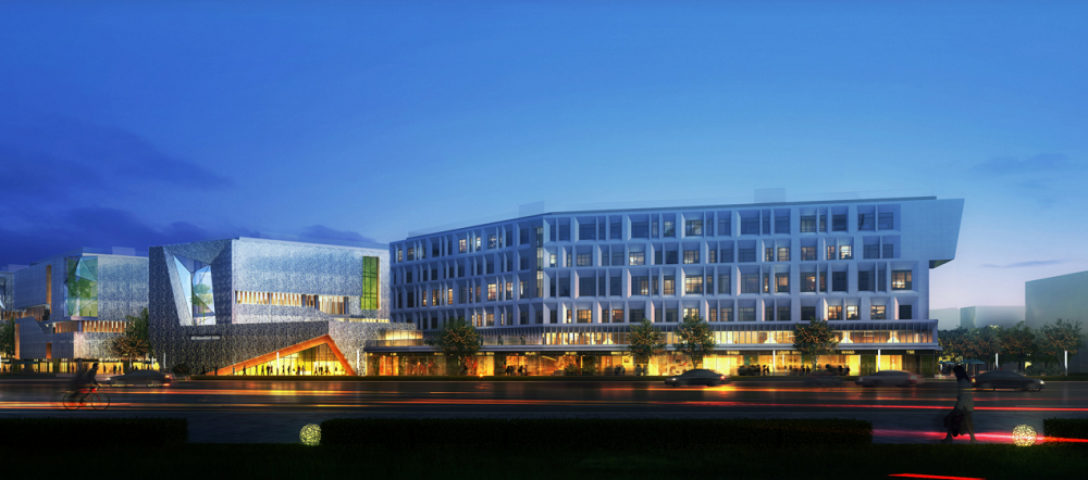 項(xiàng)目用地南高北低,東高西低,項(xiàng)目整體布局與城市空間緊密結(jié)合,通過(guò)一橫四縱的商街與景觀廊道,塑造連續(xù)的城市界面與區(qū)域標(biāo)示性建筑形象。場(chǎng)地共設(shè)置主要人行出入口和車行出入口各兩處,分別設(shè)置在場(chǎng)地內(nèi)西北方向及東向,場(chǎng)地內(nèi)實(shí)現(xiàn)人車分流,保證交通流暢性。場(chǎng)地內(nèi)建筑群落可分為3部分,分別是1#樓五星級(jí)酒店新建建筑、辦公改造建筑群(2-2#樓、3-2#樓、4-2#樓、6-2#樓)、商旅酒店改造建筑群(2-1#樓、3-1#樓、4-1#樓、5#樓、6-1#樓)。